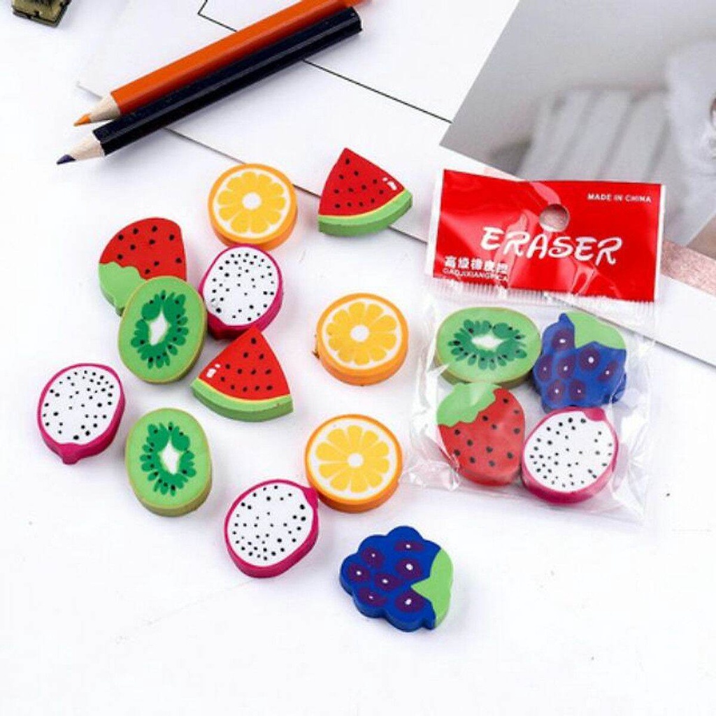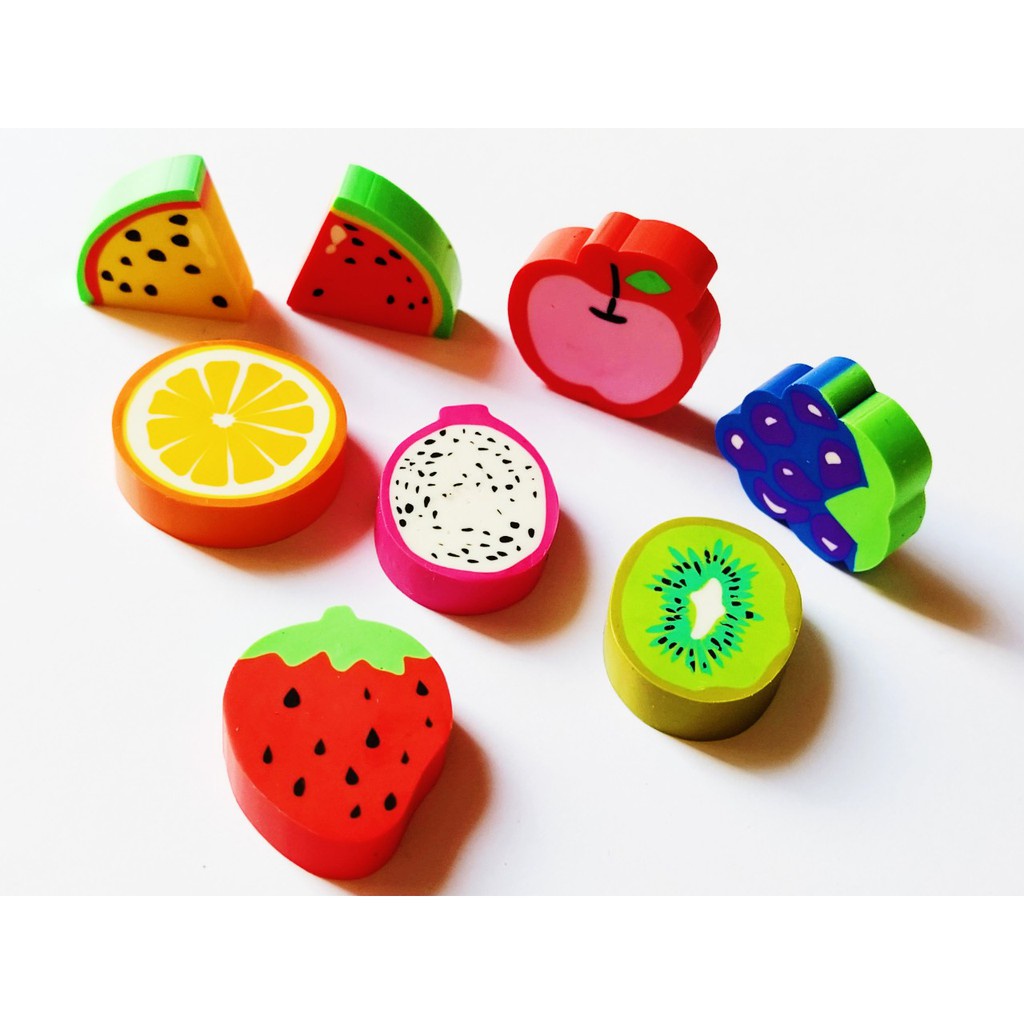 - Sản phẩm là bộ sưu tập gôm tẩy hình trái cây các loại như: cam, dâu, nho, táo, nhìn thật vui mắt, khiến cho việc học tập của bạn có thêm một sức sống mới, một động lực mới.