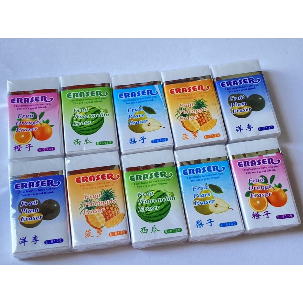 Gôm bút chì E-6135 Màu Trắng Với Vỏ có họa tiết các loại trái cây dễ thương